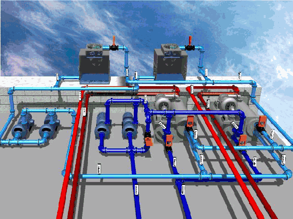 冷凍水循環(huán)系統(tǒng):由冷凍泵及冷凍水管道組成。從冷水機(jī)組流出的冷凍水由冷凍泵加壓送入冷凍水管道, 在個(gè)房間內(nèi)進(jìn)行熱交換,帶走房間內(nèi)熱量,是房間內(nèi)的溫度下降。