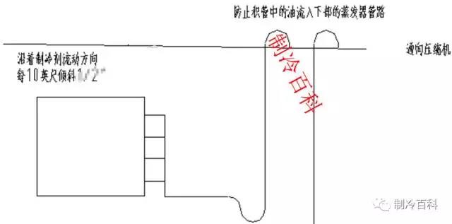1、水平吸氣管路沿制冷氣流動(dòng)的方向,要有大于0.5%的斜度。