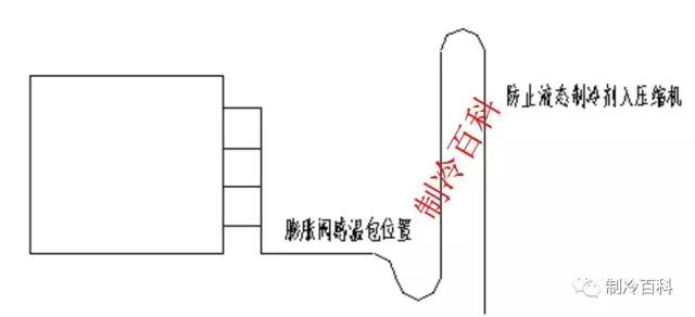 2、當(dāng)吸氣上升管和蒸發(fā)器相連時(shí),中間應(yīng)留有一段水平管和截留彎,勇于安裝感溫包;防止膨脹閥產(chǎn)生誤動(dòng)作。
